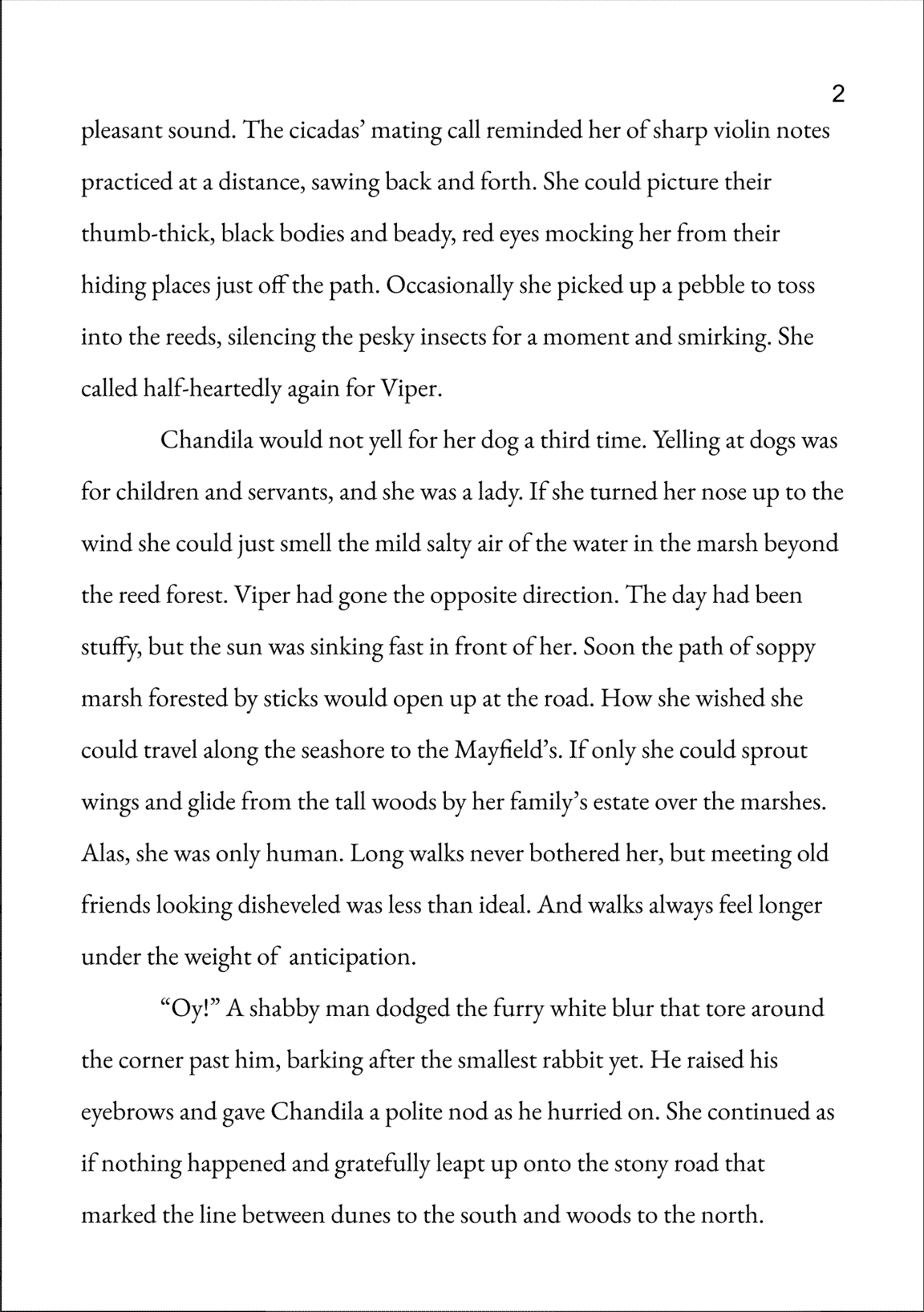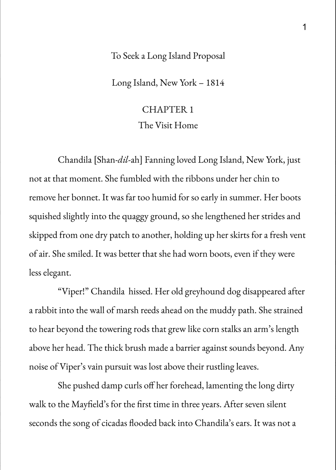 Jane Austen meets Legally Blonde in this character driven historical fiction set in 1814 Long Island, New York. Chandila discovers she must have a husband to inherit, but she will not settle for just anyone. Fortunately the antisocial widower, Mr. Wren, has everything she's looking for, except an interest in marrying again. A mere trifle to clever Chandila.